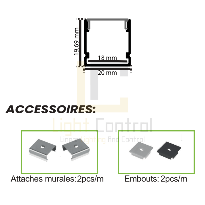 Inside the profile you can put ribbons (5050,5630,3014,3528…), or Rigid LED bar intended for cold white, warm white, Amber or RGB color lighting, without limit to your design and imagination .