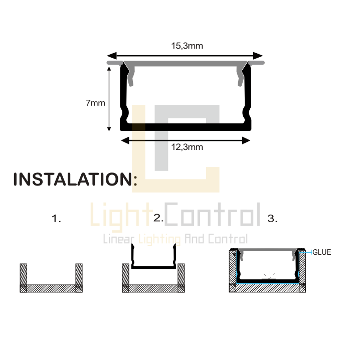 The profile integrates seamlessly into concrete, wood, tile, or other flooring materials and can be paired with a polycarbonate cover for light diffusion and enhanced durability. With dimensions of 7×15.3×12.3mm, it provides a discreet yet powerful architectural lighting solution.