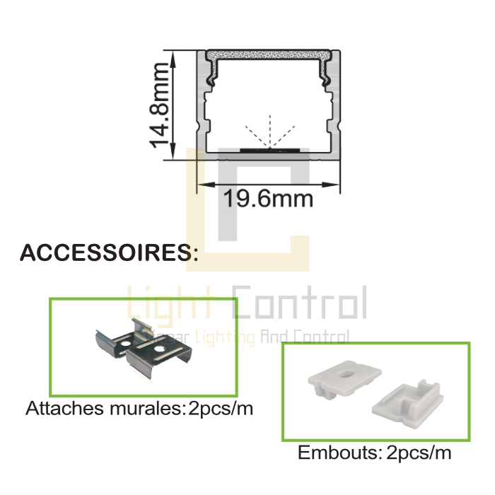 Grâce à ses dimensions compactes (19.6×14.8 mm), ce profilé apparent s’intègre facilement dans différents espaces comme les meubles, plinthes, vitrines ou encadrements.