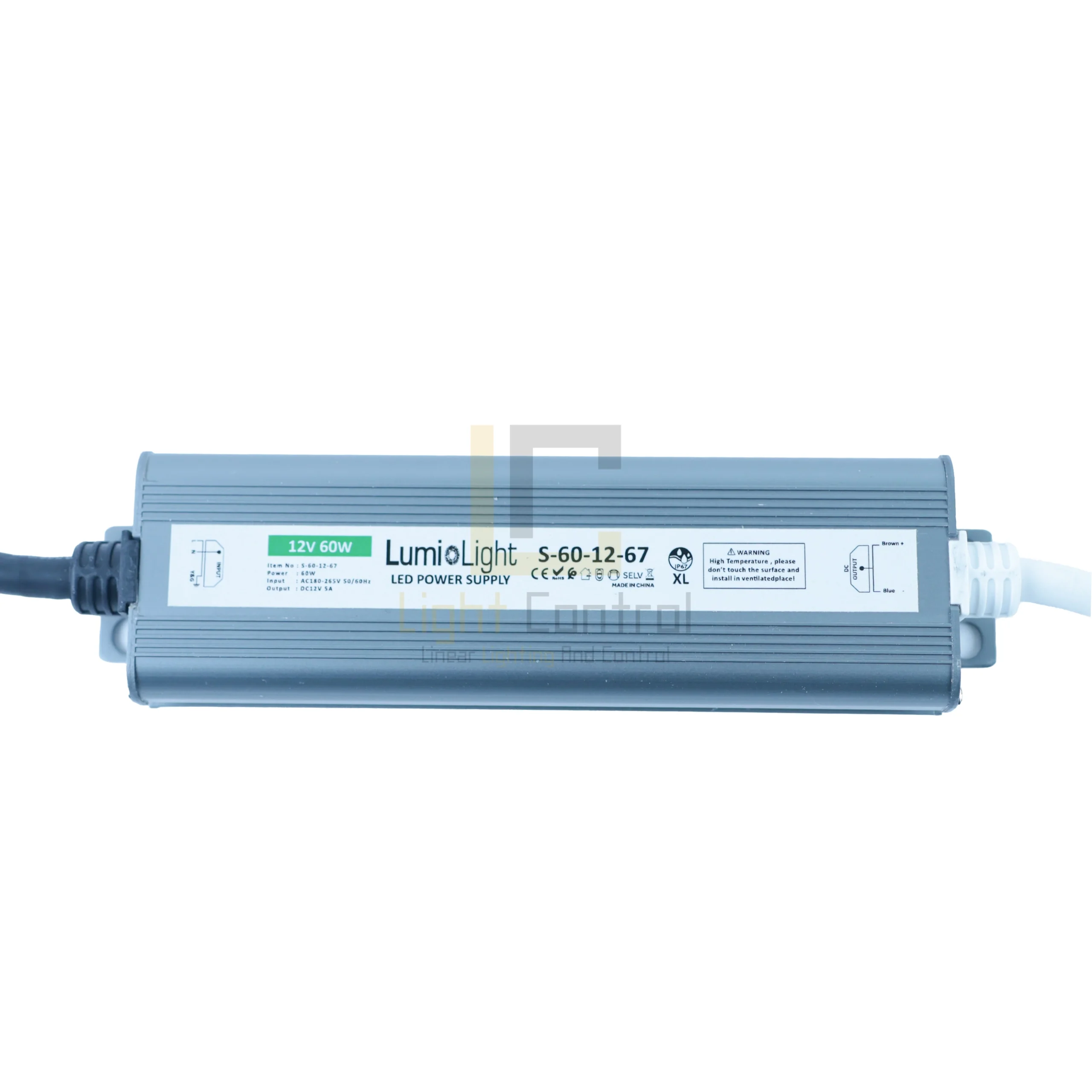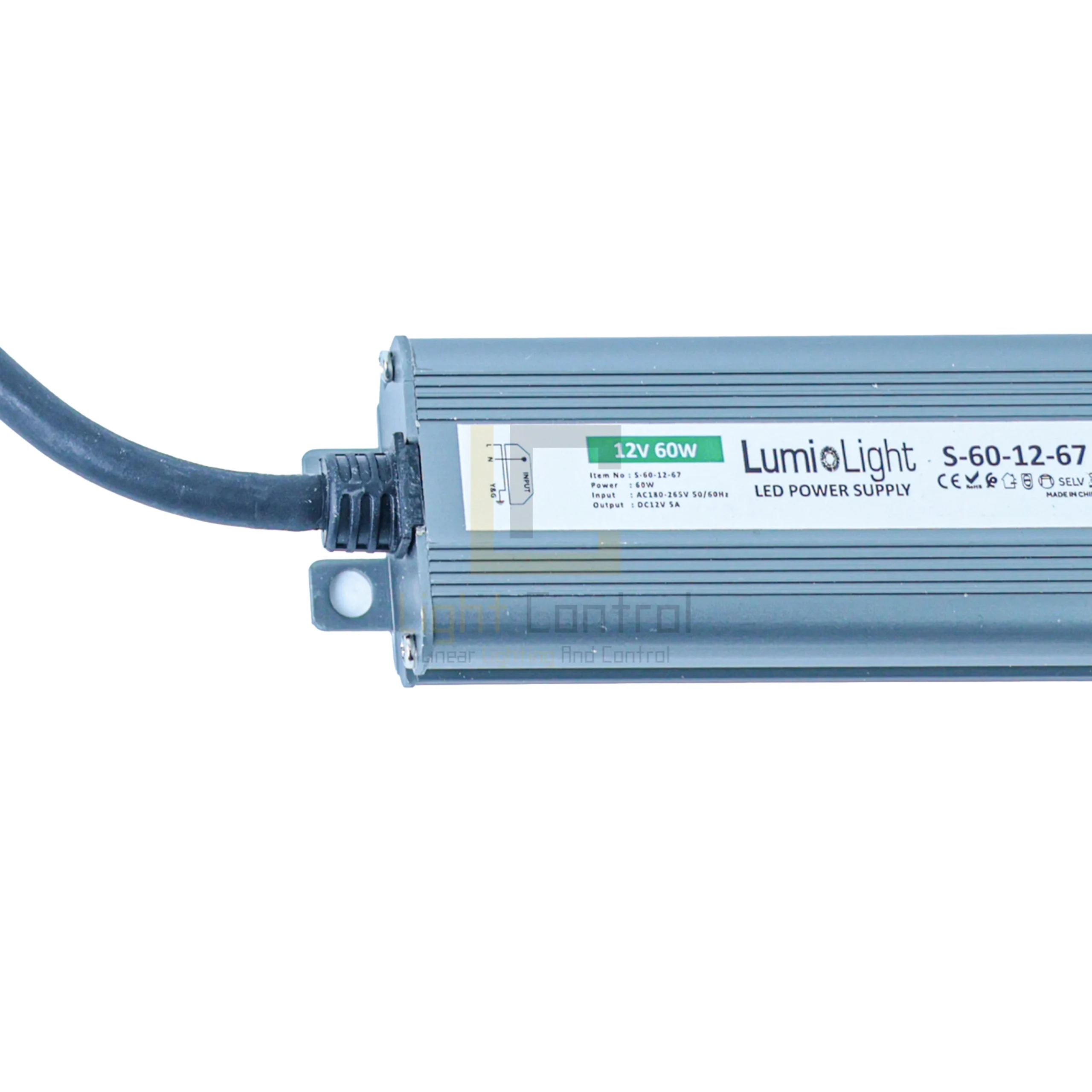 Transformateur LED 60W 12V LUMIOLIGHT IP67 – étanche, stable et haute performance.